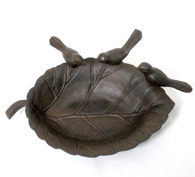 Wunderschöne Vogeltränke , verziert in Blattform mit 3 Vögelchen.